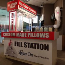 Visit our Fill Station Pillow Kiosk to design and build a pillow. Choose from a variety of fillers.